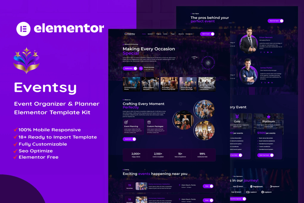 Eventsy – Event Organizer & Planner Elementor Template Kit
