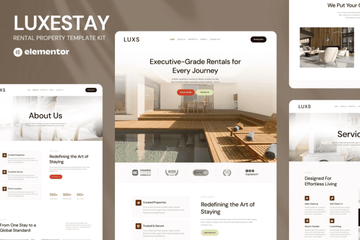 LuxeStay – Rental Property Elementor Template Kit is a sophisticated and modern website solution designed for short-term rental businesses. Perfect for showcasing luxury apartments, private villas, and vacation homes, LuxeStay combines elegant design with immersive visuals to create a truly premium online experience. Its cinematic layouts, refined typography, and seamless user journey help highlight property features while encouraging direct bookings. Fully responsive, SEO-optimized, and built with Elementor, LuxeStay allows effortless customization without any coding—making it an ideal choice for property managers, Airbnb hosts, and real estate professionals who want to elevate their brand and maximize conversions.