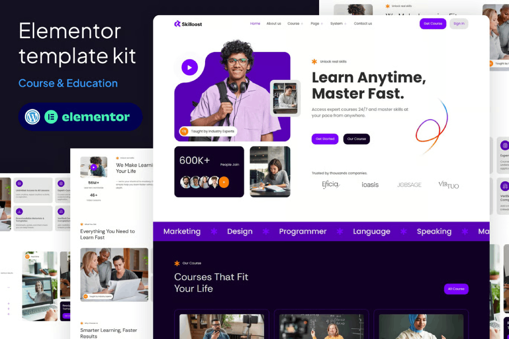 Skillite – Course & Education Elementor Template Kit (Not a WordPress Theme) is a vibrant, modern, and professionally designed solution for online learning platforms, training centers, tutors, academies, and e-learning startups. Built for WordPress and fully optimized for the free version of Elementor, Skillite allows you to create a powerful and engaging educational website—without writing a single line of code.